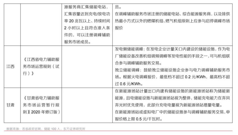 我國(guó)的電力輔助服務(wù)市場(chǎng)采用補(bǔ)償機(jī)制,儲(chǔ)能參與電力輔助的收益來自于調(diào)峰調(diào)頻補(bǔ)貼。為應(yīng)對(duì)大規(guī)模儲(chǔ)能進(jìn)入市場(chǎng)的需求,各地政府紛紛出臺(tái)或調(diào)整補(bǔ)償政策標(biāo)準(zhǔn),一方面規(guī)范市場(chǎng)化進(jìn)程,另一方面降低資金使用的風(fēng)險(xiǎn)。