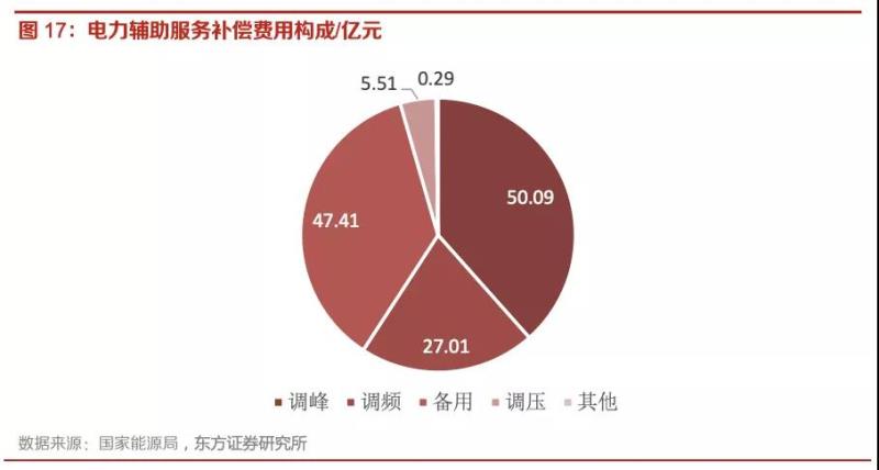 根據(jù)國(guó)家能源局最新的電力輔助服務(wù)有關(guān)情況的通報(bào),2019年上半年全國(guó)電力服務(wù)補(bǔ)償費(fèi)用總計(jì)130.31億元。其中,調(diào)峰補(bǔ)償費(fèi)用總額50.09億元,占總補(bǔ)償費(fèi)用的38.44%;調(diào)頻補(bǔ)償費(fèi)用總額27.01億元,占比20.73%;備用補(bǔ)償費(fèi)用總額47.41億元,占比36.38%;調(diào)壓補(bǔ)償費(fèi)用5.51億元,占比4.23%;其他補(bǔ)償費(fèi)用0.29億元,占比0.22%。