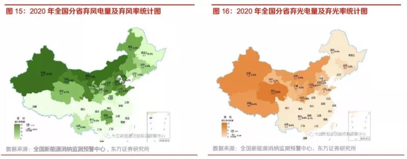 根據(jù)全國(guó)新能源消納檢測(cè)預(yù)警中心的統(tǒng)計(jì)數(shù)據(jù),截至2020年底我國(guó)風(fēng)電、光伏的并網(wǎng)裝機(jī)分別達(dá)到2.8和2.5億千瓦;2020年全年風(fēng)電、太陽(yáng)能累計(jì)發(fā)電量7270億千瓦時(shí);全年全國(guó)棄風(fēng)電量166.1億千瓦時(shí),風(fēng)電利用率(消納率)96.5%;棄光電量18.3億千瓦時(shí),光伏發(fā)電利用率(消納率)98.0%。從分省棄風(fēng)棄光電量情況分布圖中可以看到,部分可再生能源豐富、但是用電需求相對(duì)較低的地區(qū)(如青海、新疆、西藏等)棄風(fēng)棄光率顯著高于全國(guó)平均水平。
