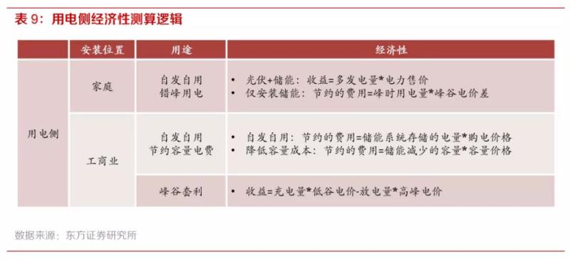 1. 用電側(cè):家庭光儲(chǔ)合用、工商業(yè)節(jié)省容量電價(jià)+峰谷價(jià)差套利經(jīng)濟(jì)性明顯