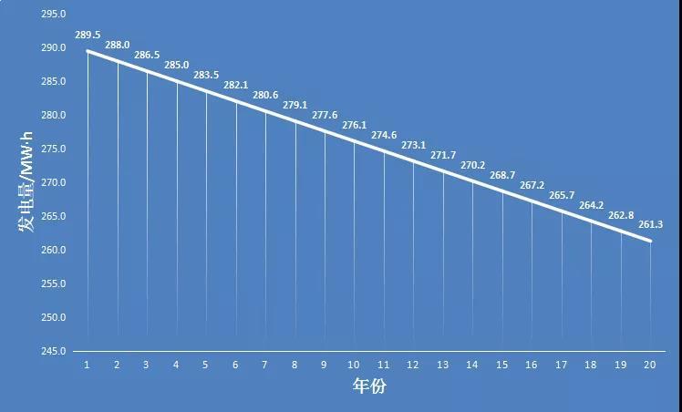 按照光伏組件自身的特性,第一年的衰減系數(shù)約為2.5%,第二年開(kāi)始往后每年衰減0.5%。