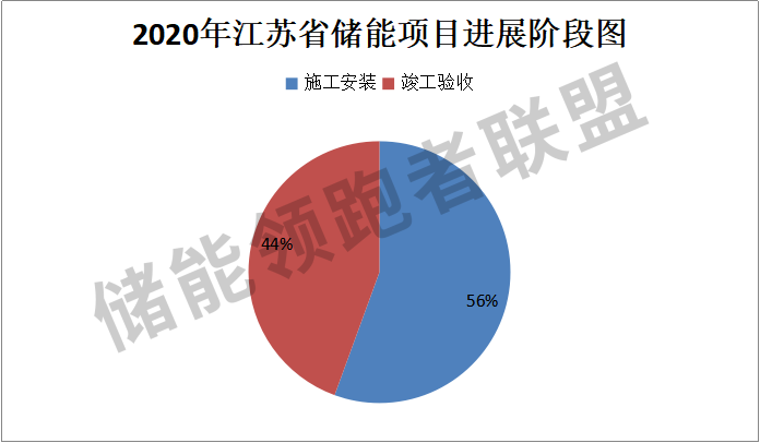 江蘇省已計(jì)入統(tǒng)計(jì)的18個(gè)儲(chǔ)能項(xiàng)目,處于施工安裝階段的儲(chǔ)能項(xiàng)目有10個(gè),約占2020全年儲(chǔ)能項(xiàng)目總量的55.56%;處于竣工驗(yàn)收階段的儲(chǔ)能項(xiàng)目有8個(gè),約占2020全年儲(chǔ)能項(xiàng)目規(guī)模總量的44.44%。
