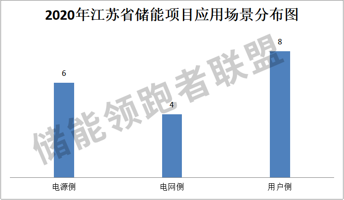 從應(yīng)用場(chǎng)景看,2020年江蘇省電源側(cè)儲(chǔ)能項(xiàng)目有6個(gè),電網(wǎng)側(cè)儲(chǔ)能項(xiàng)目有4個(gè),用戶側(cè)儲(chǔ)能項(xiàng)目有8個(gè)。