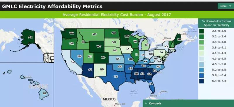 電費(fèi)占居民收入最高的是阿拉巴馬州(7.4%)、密西西比州(7.1%)、亞利桑那州(6.8%)。