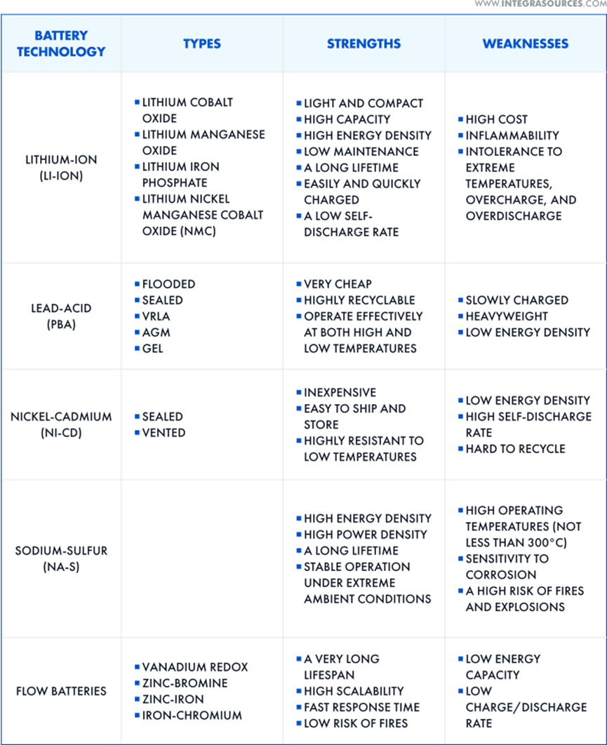 Figure3. Battery technologies used for energy storage