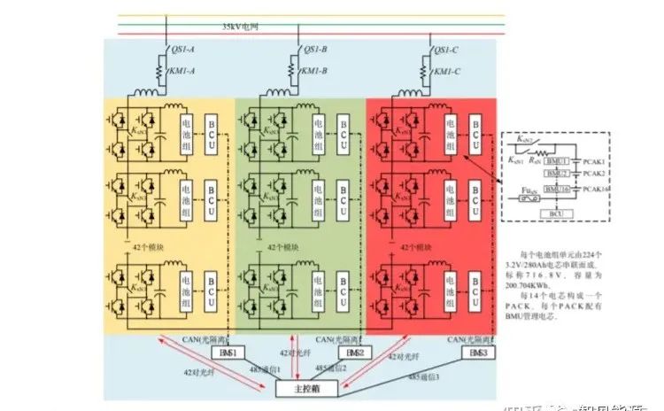 (2)分布式:低壓小功率分布式升壓并網(wǎng)儲能系統(tǒng),每一簇電池都與一個PCS單元連接,PCS采用小功率、分布式布置。
