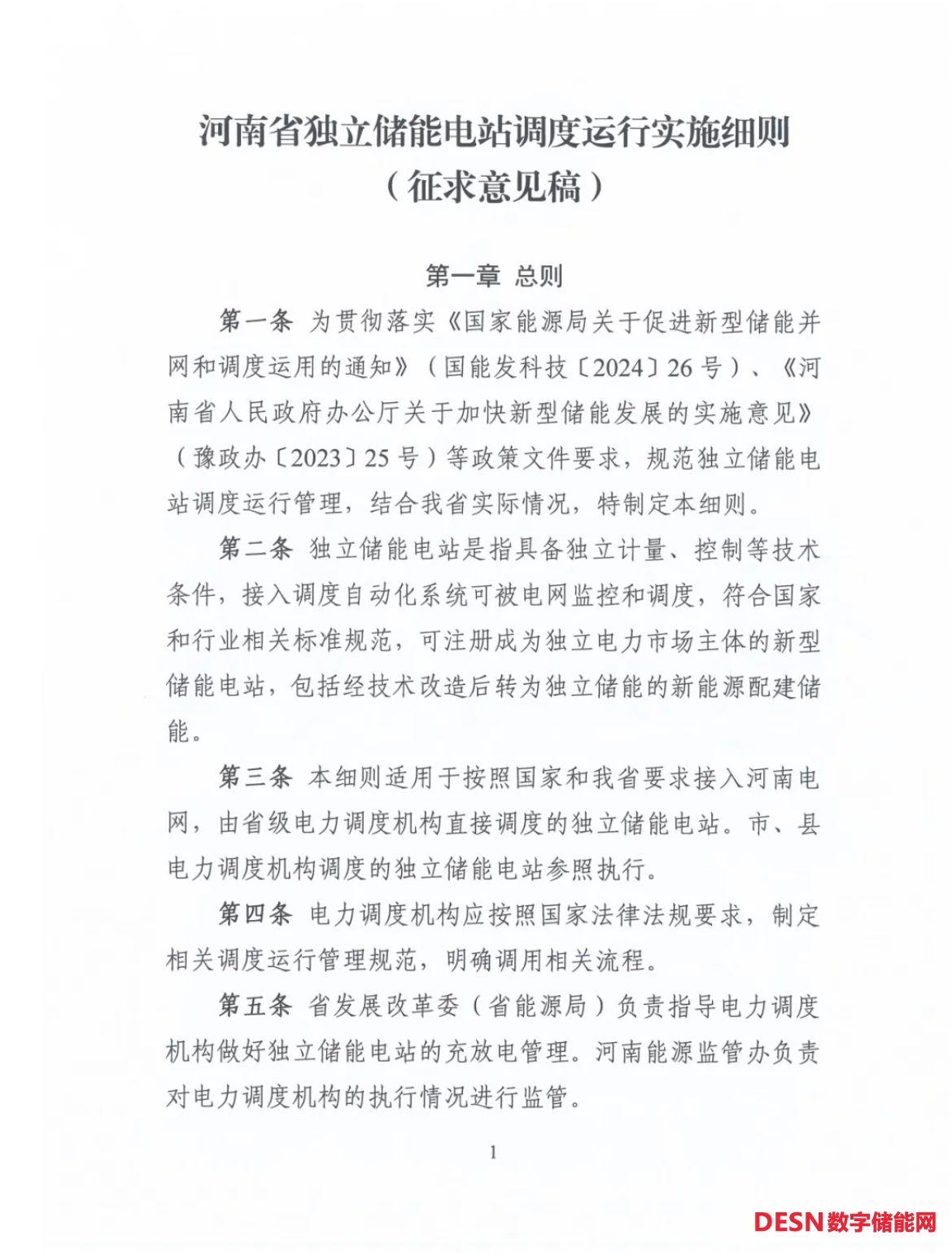 河南省獨立儲能電站調(diào)度運行實施細(xì)則(征求意見稿)原文如下: