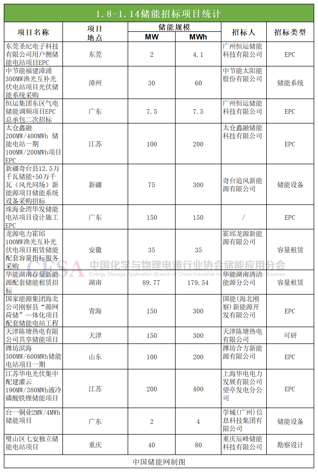 本周簽約、開(kāi)工、并網(wǎng)儲(chǔ)能項(xiàng)目如下: