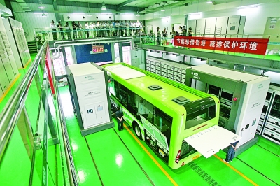 電動(dòng)公交車(chē)正在換電池。劉瀏攝