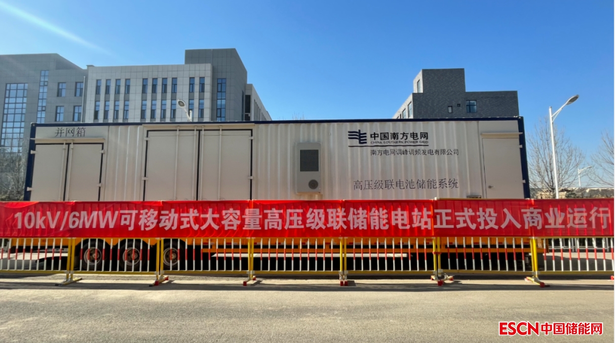 中國(guó)儲(chǔ)能網(wǎng)訊:1月1日,由南方電網(wǎng)儲(chǔ)能股份有限公司投資建設(shè)的我國(guó)首個(gè)移動(dòng)式大容量高壓級(jí)聯(lián)電池儲(chǔ)能電站(10kV/6MW),在河北保定正式投入商業(yè)運(yùn)行。