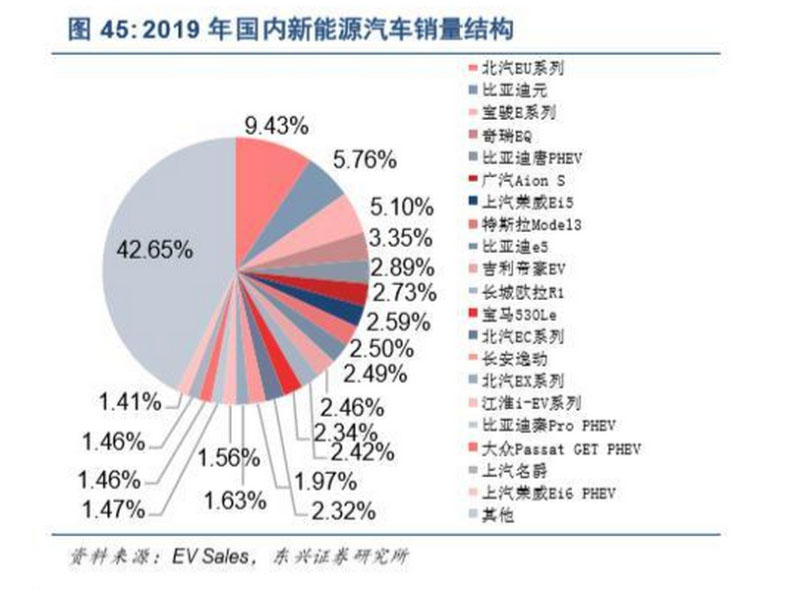 汽車的消費(fèi)屬性很強(qiáng),品牌認(rèn)知很重要,而一些外資品牌在中國(guó)市場(chǎng)具有較高的認(rèn)知度。中汽協(xié)統(tǒng) 計(jì)數(shù)據(jù)顯示,國(guó)內(nèi)自主品牌在乘用車市場(chǎng)的合計(jì)份額常年維持在 38%~46%之間,如圖 44 所示;海外品 牌中,德系車在中國(guó)市場(chǎng)的品牌認(rèn)知度領(lǐng)先,市場(chǎng)份額約 20%。從 2019 年前 11 個(gè)月的中國(guó)大陸新能 源乘用車細(xì)分市場(chǎng)來(lái)看,國(guó)內(nèi)車企占據(jù)主流地位,特斯拉和寶馬車型在華有少量銷售,外資品牌車型闖 入銷量前 20 名者甚寡,如圖 45 所示。我們認(rèn)為,出現(xiàn)上述差異的主要原因有:過(guò)去幾年我國(guó)通過(guò)財(cái)政 補(bǔ)貼、公交與公務(wù)車采購(gòu)等多種方式及渠道對(duì)本土新能源汽車產(chǎn)業(yè)給予支持;多數(shù)外資品牌新能源汽車 在中國(guó)市場(chǎng)尚未進(jìn)入大規(guī)模推廣階段。