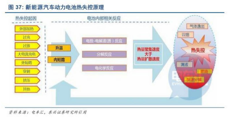 綜合多家媒體報(bào)道,諸多新能源汽車起火事件與動(dòng)力電池?zé)崾Э兀ㄔ砣鐖D 37 所示)有一定相關(guān) 性。從工信部裝備工業(yè)發(fā)展中心 2019 年 11 月 12 日發(fā)布的《關(guān)于實(shí)施<電動(dòng)汽車用動(dòng)力蓄電池系統(tǒng)熱 擴(kuò)散乘員保護(hù)測(cè)試規(guī)范(試行)>有關(guān)事項(xiàng)的通知》, 可以看出,官方對(duì)于動(dòng)力電池?zé)峁芾韱?wèn)題提高了重 視程度。
