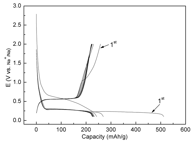 圖 2 Na2C8H4O4/KB前10周典型充放電曲線(倍率0.1C)