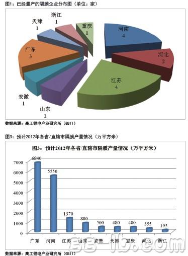 根據(jù)高工鋰電產(chǎn)業(yè)研究所(GBII)統(tǒng)計,預(yù)計2012全年隔膜總產(chǎn)量將達(dá)到1.66億平方米,總產(chǎn)能將突破4.5億平方米。結(jié)合國內(nèi)已經(jīng)成功實現(xiàn)產(chǎn)業(yè)化的幾家隔膜廠商,目前我國隔膜企業(yè)實際產(chǎn)量和設(shè)計產(chǎn)能之間存在較大差異,主要原因一方面是目前國內(nèi)企業(yè)受限于生產(chǎn)工藝,面向市場的不同,平均收率水平約40%左右;另一方面,受今年上半年宏觀經(jīng)濟(jì)下滑影響,廠商目前無法滿負(fù)荷生產(chǎn),有些廠商甚至關(guān)閉部分生產(chǎn)線,因此壓低了廠商的產(chǎn)量并提高了生產(chǎn)成本。