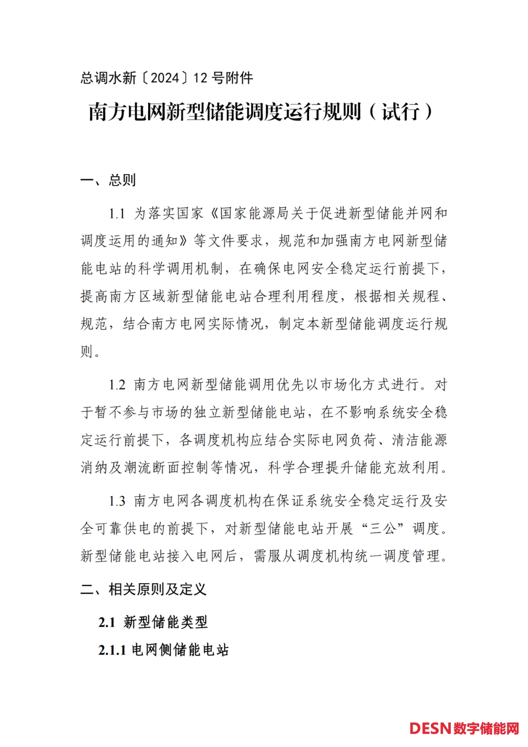 南方電網(wǎng)新型儲能調(diào)度運(yùn)行規(guī)則(試行)