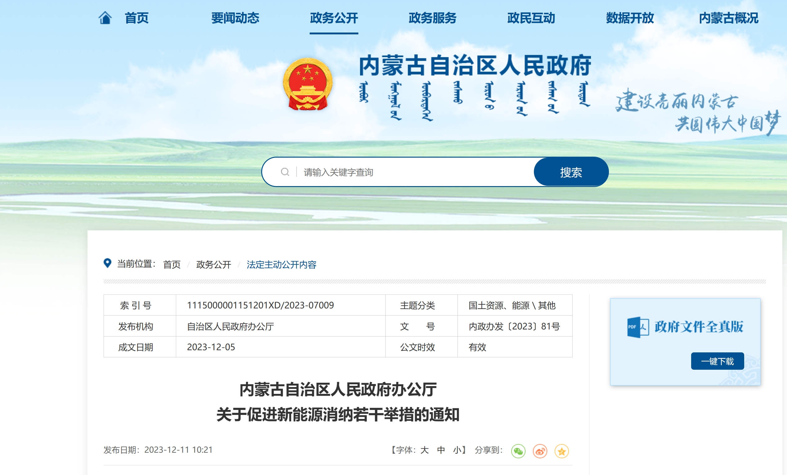 內(nèi)蒙古自治區(qū)人民政府辦公廳關(guān)于促進(jìn)新能源消納若干舉措的通知
