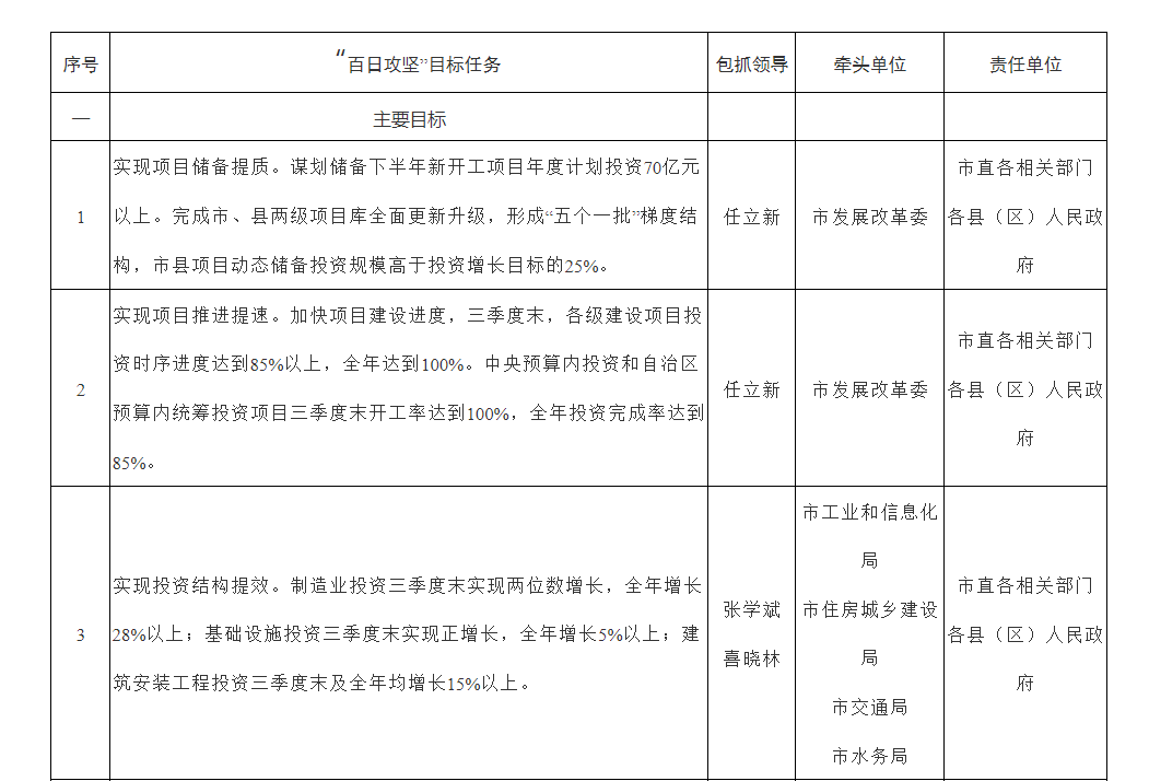 固原市貫徹落實自治區(qū)《擴大有效投資百日攻堅工作方案》目標(biāo)責(zé)任清單