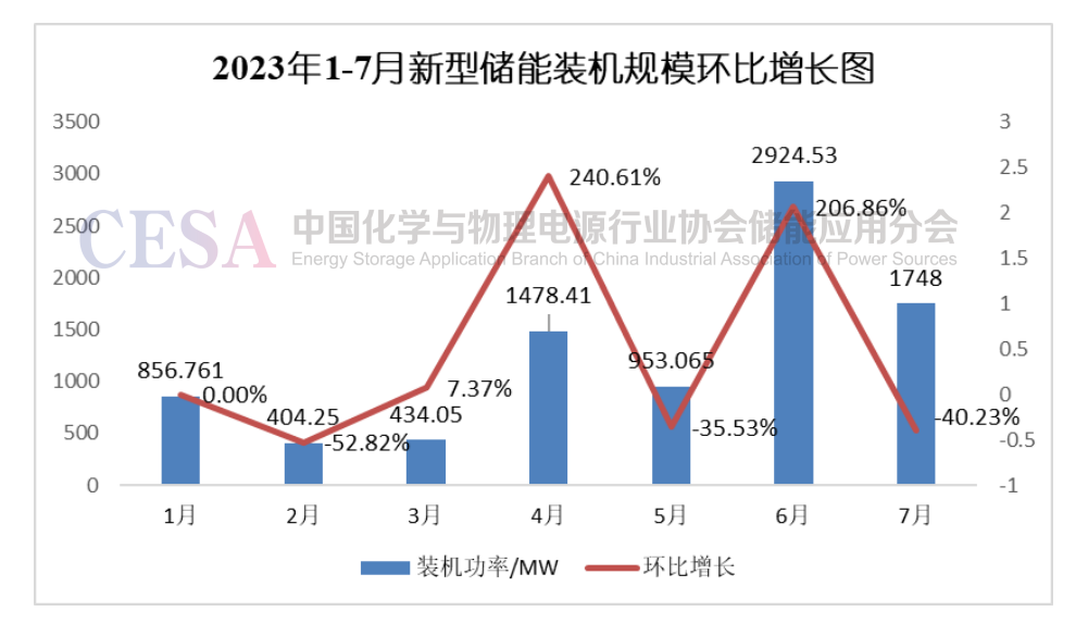 圖1 2023年1-7月新型儲能裝機(jī)規(guī)模環(huán)比增長圖