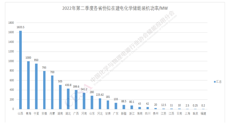 進一步分析,2022年第二季度電化學(xué)儲能項目裝機情況如下: