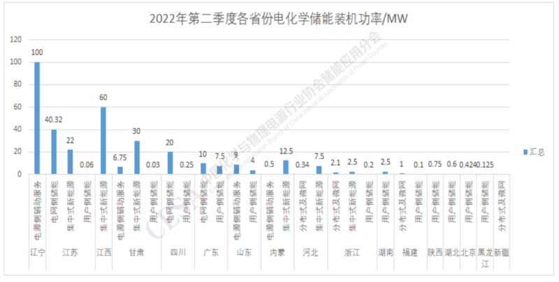 表2 2021Q2-2022Q2電化學(xué)儲能各省份應(yīng)用場景裝機功率分布