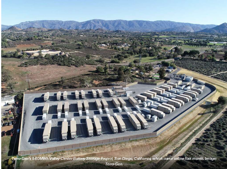 Terra-Gen公司位于加利福尼亞州圣迭戈的560MWh Valley Center電池儲能項目,該項目于上個月上線運營。