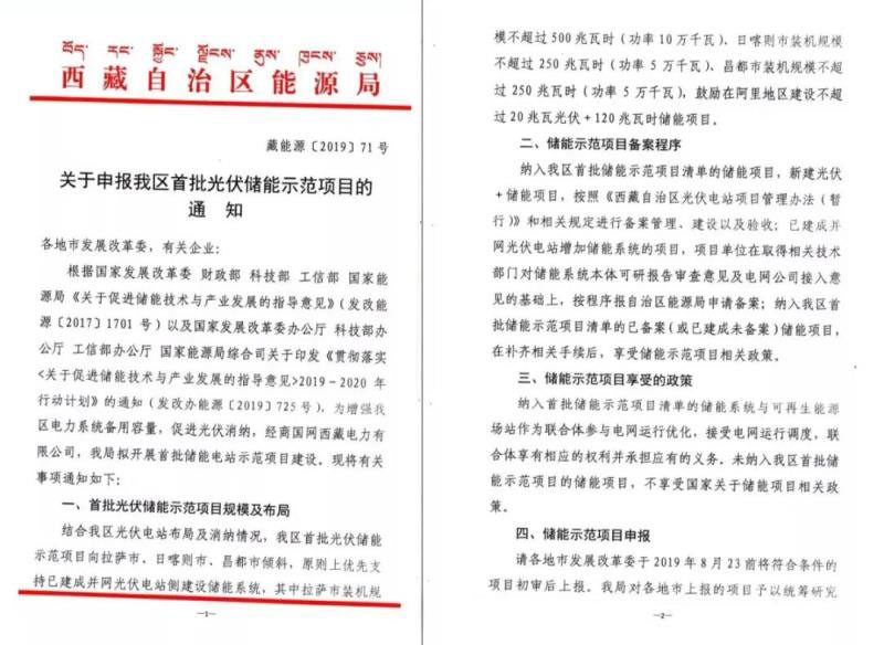 2019年8月,西藏開啟了首批光伏儲能示范項目征集通知,將優(yōu)先支持拉薩、日喀則、昌都已建成光伏電站側建設儲能系統(tǒng),規(guī)模不超過200MW/1GWh,同時鼓勵在阿里地區(qū)建設20MW光伏+120MWh儲能項目??傄?guī)模為220MW光伏+1.12GWh儲能。