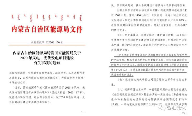 3月26日,內蒙古自治區(qū)能源局印發(fā)《2020年光伏發(fā)電項目競爭配置方案》,明確: