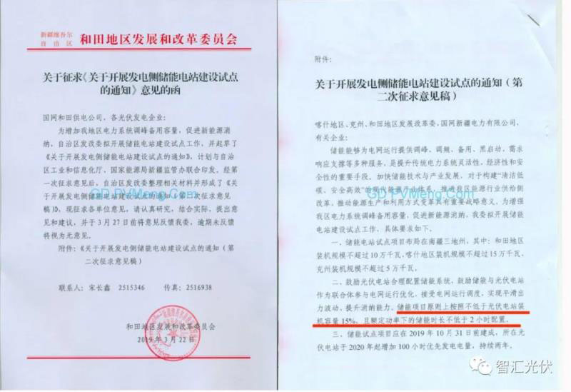 2019年7月,新疆發(fā)改委、國家能源局新疆監(jiān)管辦正式發(fā)布了《關于開展發(fā)電側光伏儲能聯(lián)合運行項目試點的通知》,提出: