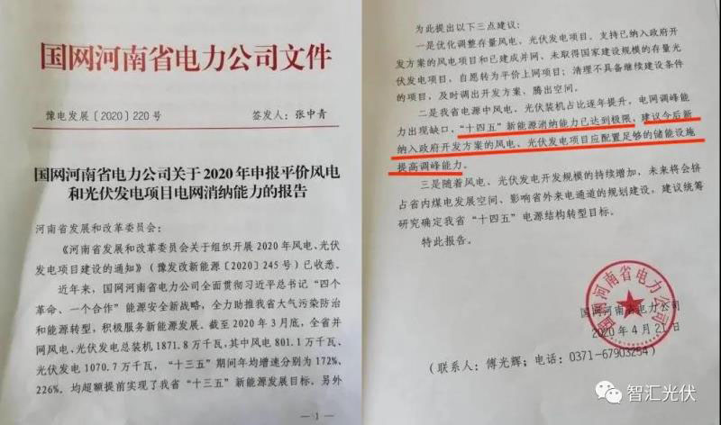 4月21日,國網河南省電力公司的《關于2020年申報平價風電和光伏發(fā)電項目電網消納能力的報告》提出: