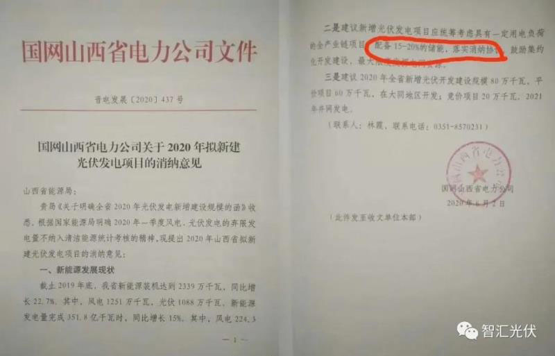 6月2日,山西省電力公司印發(fā)《關于2020年擬建光伏項目的消納意見》中建議: