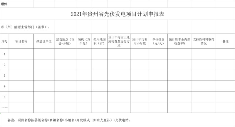 附件:2021年貴州省光伏發(fā)電項目計劃申報表.xls