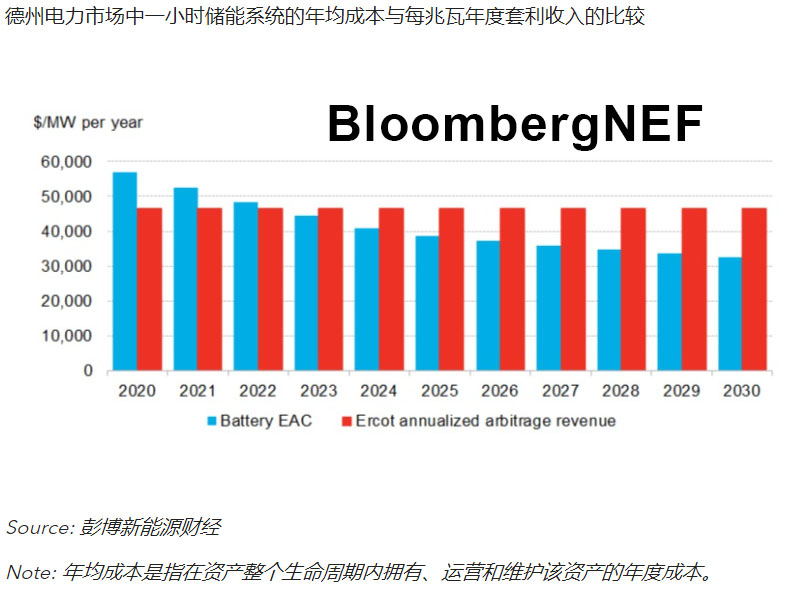 德州電力市場這類電價波動劇烈的市場中,套利是極具吸引力的選擇。假設(shè)儲能資產(chǎn)全生命周期內(nèi)電價價差大致相同,最快在2023年,套利收入就足以覆蓋配套一小時儲能電池的成本。在其他市場,峰谷價差套利空間太小。若采用規(guī)模更小(不超過風(fēng)電項目容量的10%)、儲能時長更短的方案(不超過1小時),能更快實現(xiàn)盈虧平衡。