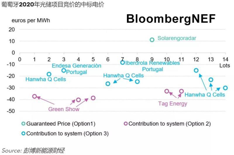 在葡萄牙,第二次競價(jià)首次為配套儲能的大型地面光伏電站的項(xiàng)目提供了新的并網(wǎng)途徑,光儲項(xiàng)目可參與新的"靈活性 "類別下的容量競價(jià)。競價(jià)因此吸引了大量開發(fā)商參與投標(biāo),其中有483MW的光伏項(xiàng)目將在場內(nèi)安裝儲能,且其申報(bào)容量電價(jià)全部為負(fù),意味著開發(fā)商將向電網(wǎng)運(yùn)營商支付8.2-30.2歐元/兆瓦時(shí),以換取項(xiàng)目并網(wǎng)。
