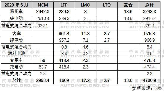 從動(dòng)力電池類型來(lái)看,三元電池裝車量3GWh,占比63.8%,磷酸鐵鋰電池裝車量1.7GWh,占比35.5%。從裝機(jī)車型來(lái)看,新能源乘用車主要搭載三元NCM電池,新能源商用車主要搭載磷酸鐵鋰電池。但是,6月磷酸鐵鋰電池配套乘用車比例從4%提高到9%。