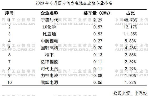 6月,我國(guó)新能源汽車市場(chǎng)共計(jì)48家動(dòng)力電池企業(yè)實(shí)現(xiàn)裝車配套。TOP10企業(yè)基本沒(méi)有變化,尤其前5名的排序穩(wěn)定。