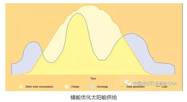 太陽能供給曲線(黃色)是變量,與傳統(tǒng)電力需求曲線(藍色)僅部分保持一致,將光伏+儲能相結(jié)合可以儲存多余電量(白色區(qū)域),當用戶需求過高時(藍色區(qū)域),可以將儲存的太陽能電量運送回輸電網(wǎng),最大限度的利用儲能的技術(shù)潛力。