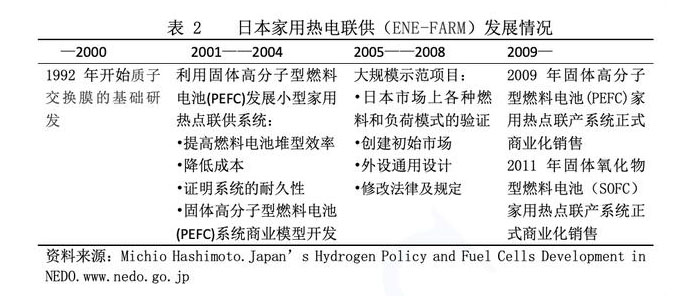 ENE-FARM是日本氫能在居民住宅中應(yīng)用的嘗試,通過將氫氣注入燃料電池中發(fā)電,同時(shí)用發(fā)電時(shí)產(chǎn)生的熱能來供應(yīng)暖氣和熱水,形成微型熱電聯(lián)供系統(tǒng)。目前主要有固體高分子型燃料電池(PEFC)和固體氧化物型燃料電池(SOFC)兩種類型,生產(chǎn)700瓦和1000瓦發(fā)電量的產(chǎn)品,能夠滿足部分電力需求和全部的熱水需求。早在1992年日本就開始了針對(duì)燃料電池的質(zhì)子交換膜進(jìn)行基礎(chǔ)研發(fā),探索氫能在住宅中的應(yīng)用。2001年開始進(jìn)行小規(guī)模固體高分子型燃料電池(PEFC)的研發(fā)和示范,2009年,固體高分子型燃料電池(PEFC)熱電聯(lián)供系統(tǒng)正式上市銷售,2011年固體氧化物型燃料電池(SOFC)熱電聯(lián)產(chǎn)系統(tǒng)也上市銷售。