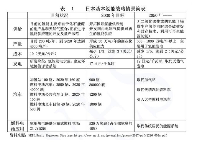 (一)日本“基本氫能戰(zhàn)略”的主要內(nèi)容