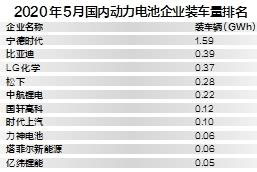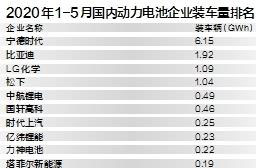 日前,中國汽車動(dòng)力電池產(chǎn)業(yè)創(chuàng)新聯(lián)盟發(fā)布了5月份動(dòng)力電池報(bào)告。在動(dòng)力電池企業(yè)裝車量方面,寧德時(shí)代、比亞迪、LG化學(xué)分別以1.59GWh、0.39GWh和0.37GWh占據(jù)前三。配套特斯拉國產(chǎn)車型的LG化學(xué)在5月超越了松下升至第三位,后者裝車量為0.28GWh。