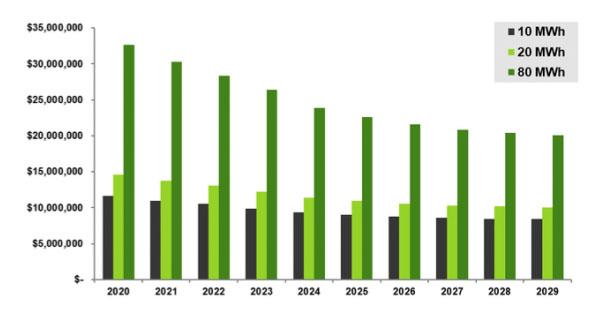 Alex Eller說(shuō),在儲(chǔ)能系統(tǒng)層面上,而不是在電池或電池組層面上,重要的是要考慮持續(xù)放電時(shí)間對(duì)儲(chǔ)能項(xiàng)目成本的影響。鋰離子電池儲(chǔ)能系統(tǒng)的持續(xù)放電時(shí)間越長(zhǎng),儲(chǔ)能容量越大,成本也越高。