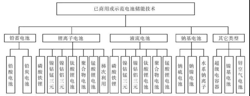 圖1 已商用或示范電池儲能技術(shù)分類