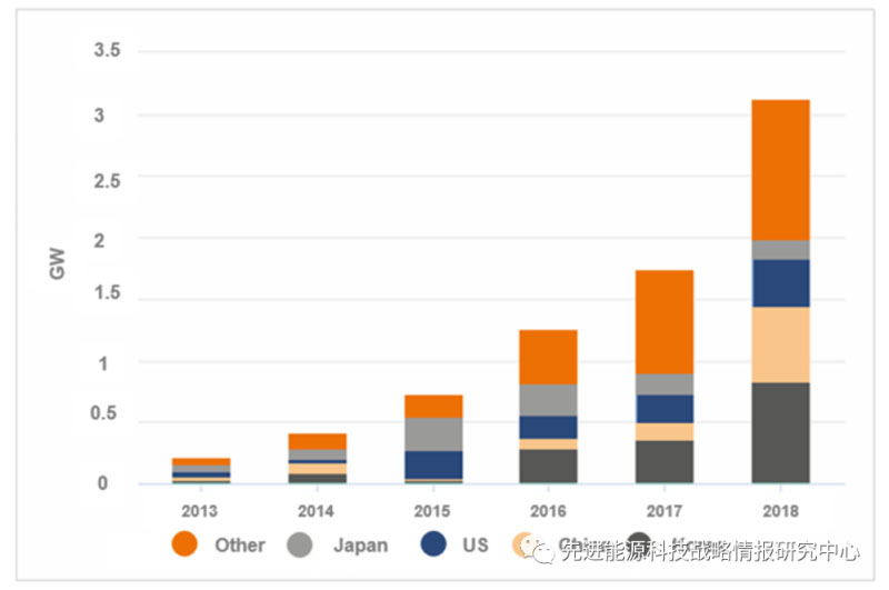 圖1 全球儲能新增裝機容量(單位:吉瓦)