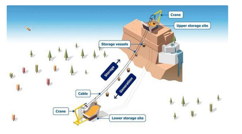 Hunt和他的合作者設計了一種新的系統(tǒng)來解決鋰離子電池長期用于儲能:山地重力儲能,簡稱MGES。與水力發(fā)電類似,MGES包括在海拔高度儲存物質以產生重力能。當儲存的物質下落并轉動渦輪機發(fā)電時,能量被回收。該團隊在11月6日發(fā)表在《能源》雜志上的一篇論文中描述了它的系統(tǒng)。Hunt解釋說:“我們建議建造一個大的沙礫水庫,而不是建一座大壩?!盡GES的關鍵在于找到兩個海拔高度相差1000米的山頂?shù)攸c是理想的?!案卟钤酱?,技術就越便宜,”他說。這些地點看起來很相似,每一個地點都有一個類似礦山的砂或礫石儲存站和一個正下方的加油站組成。閥門將材料釋放到等待的容器中,然后通過起重機和電機電纜將其運送到上層現(xiàn)場。在那里,沙子或礫石被儲存了幾周,幾個月,甚至幾年,直到可以使用為止。當物質被移回山下時,儲存的引力能被釋放并轉化為電能。該系統(tǒng)非常靈活,Hunt說,因為你可以很容易地改變電纜的速度,增加負載,或改變船只的數(shù)量,以滿足不同的能源需求。Hunt說,與抽水蓄能水電站和大壩等傳統(tǒng)的長期蓄水方法相比,MGES的效果更好,因為它對環(huán)境的影響很小。而且,成堆的沙子很便宜,比水還便宜。沙子不會蒸發(fā),所以你可以繼續(xù)無限期地使用它。Hunt估計,通過這個系統(tǒng)儲存能量的年成本將在每兆瓦時50至100美元之間變化。