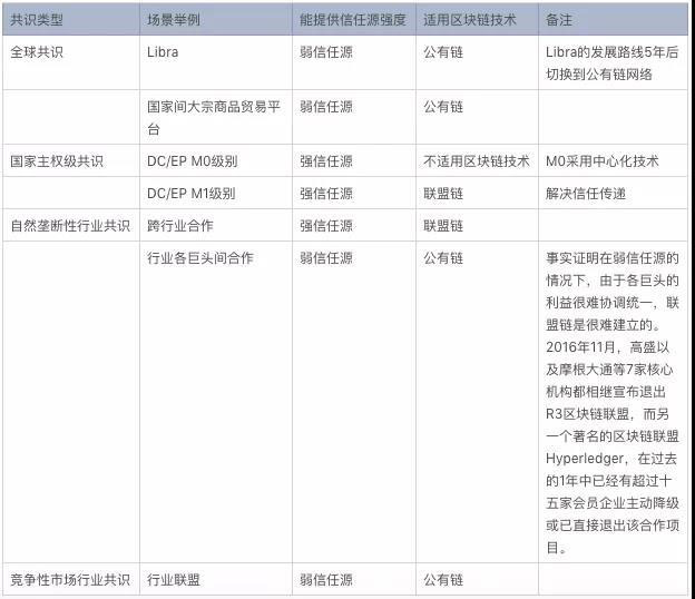 了解了區(qū)塊鏈中公有鏈和聯(lián)盟鏈的技術(shù)特點(diǎn),我們可以分析一下各應(yīng)用場景的適用技術(shù):