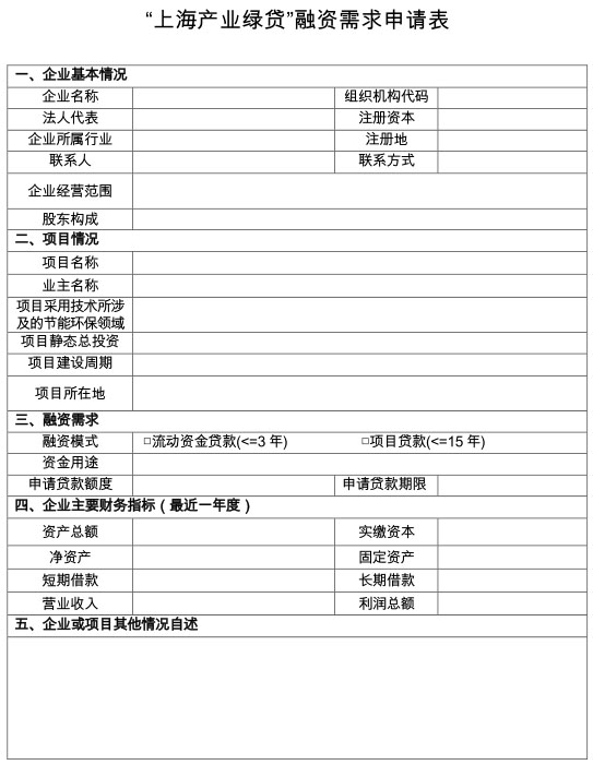 附件:1.“上海產(chǎn)業(yè)綠貸”融資需求申請表