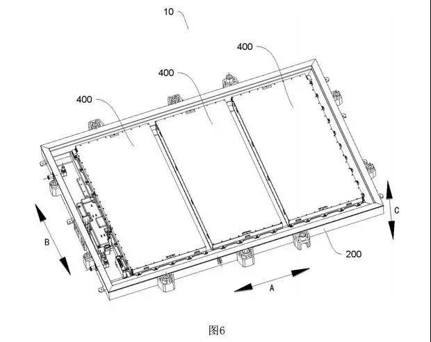 同時(shí)本申請(qǐng)的單體電池尺寸能與電池包的尺寸相配合,單體電池可直接并列布置在電池包中,無(wú)需像現(xiàn)有技術(shù)中,必須先將多個(gè)單體電池并列布置在由兩個(gè)端板和兩個(gè)側(cè)板圍設(shè)形成的模組框架內(nèi),再將電池模組組裝成電池包。