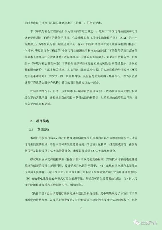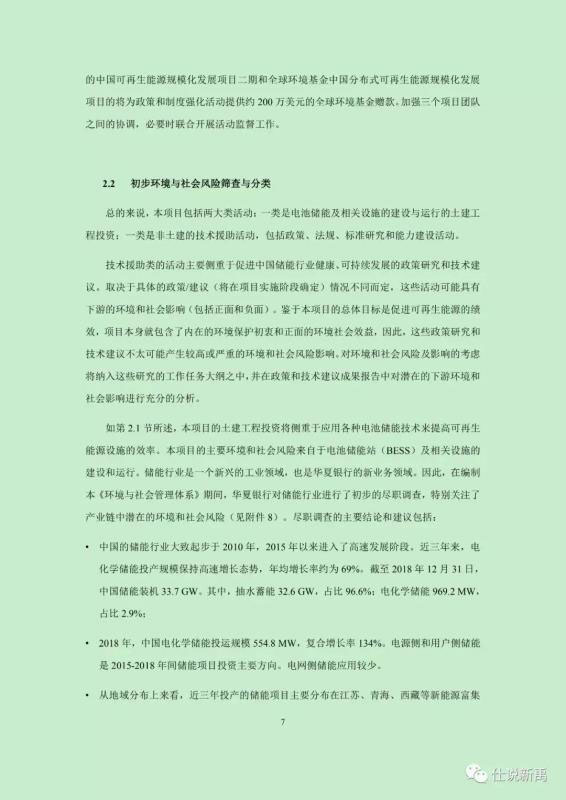 據(jù)了解,華夏銀行申請(qǐng)承接了世界銀行全球最大儲(chǔ)能項(xiàng)目——“中國(guó)可再生能源和電池儲(chǔ)能促進(jìn)項(xiàng)目”。根據(jù)華夏銀行報(bào)告顯示,項(xiàng)目不僅包含對(duì)電池儲(chǔ)能等建設(shè)運(yùn)行的投資,還包括政策、法規(guī)、標(biāo)準(zhǔn)研究等技術(shù)援助活動(dòng)。