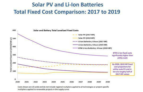 研究表示,2019年電網(wǎng)規(guī)模的太陽能+儲(chǔ)能成本約為2017年綜合資源計(jì)劃(IRP)的一半。