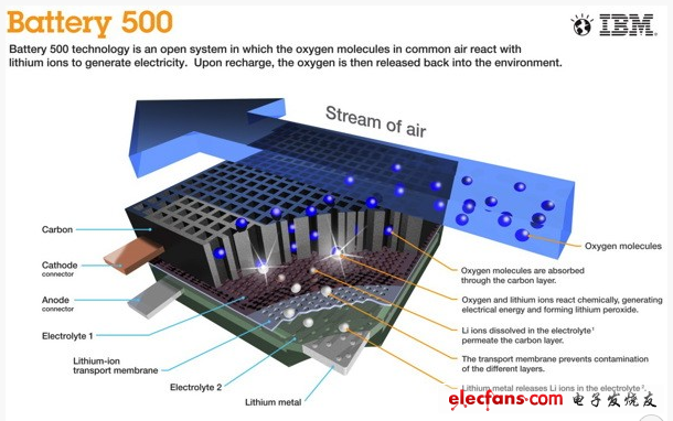 根據IBM“Battery 500”計劃指出,目前的鋰離子電池充滿電可讓電動車行駛約100英哩,雖對于一個普通家庭來說已經足夠,但是如要遠程旅行,仍必須大幅提升續(xù)航力。