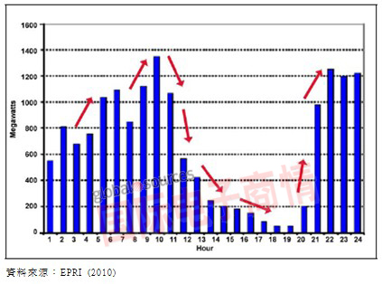 隨著再生能源并網(wǎng)及滲透率提升,由風力發(fā)電分布圖可以得知,風力發(fā)電量的變化差異甚大。為補足風力發(fā)電沒有運作時的發(fā)電缺口,需要相對應(yīng)的備載容量,若能提供具經(jīng)濟效益的電網(wǎng)儲能,可望有效改善電力設(shè)備的利用率及提高電網(wǎng)效率。